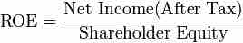 ROE is equal to after-tax net income divided by total shareholder equity.