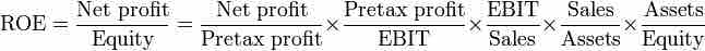 This is an expression of return on equity decomposed into its various factors.