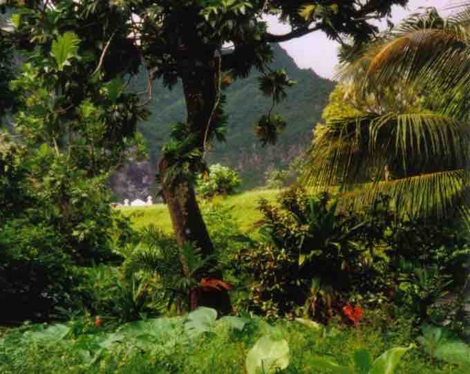 The rainforest on Fatu Hiva, Marquesas Islands is an example of an undisturbed natural resource. Forest provides timber for humans and food and shelter for flora and fauna. The nutrient cycle between organisms form food chains and biodiversity of species.