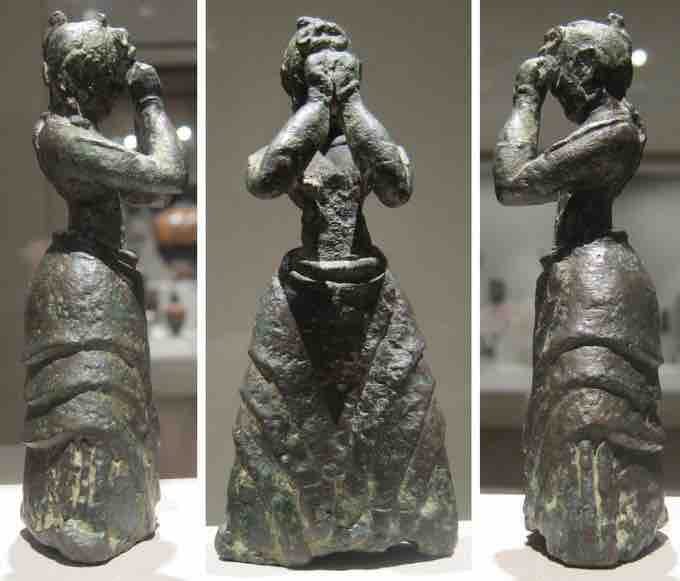 Other figures in similar poses and outfits have also been found among Minoan ruins.