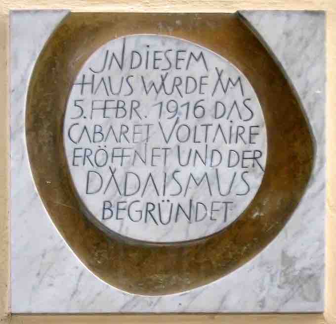 This plaque is from the Cabaret Voltaire, the first venue where Dada artists showcased their work in 1916.
