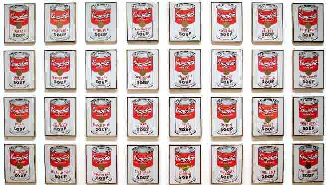 Andy Warhol, Campbell's Soup Cans, 1962, synthetic polymer on 32 canvases. 20 x 16 in each. Museum of Modern Art, New York.