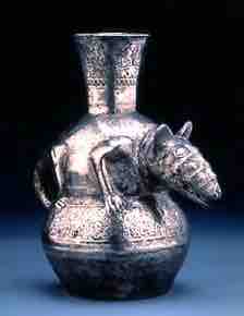 While this bottle was most likely made by Chimú artisans, Inca metalworkers adopted similar characteristics.
