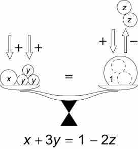 Illustration of a simple equation as a balance.