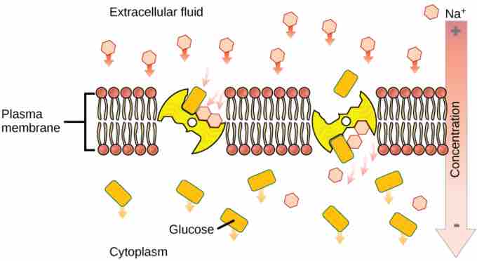 • Secondary active transport brings sodium ions into the cell, and as sodium ion concentrations build outside the plasma membrane, an electrochemical gradient is created.