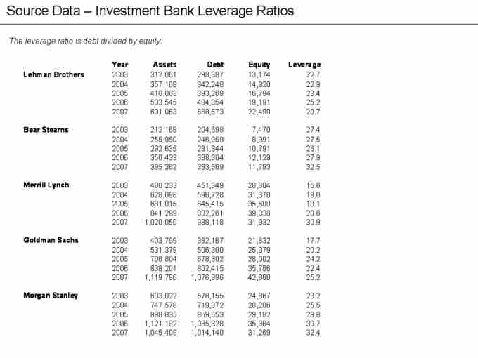 Leverage ratios for some investment banks