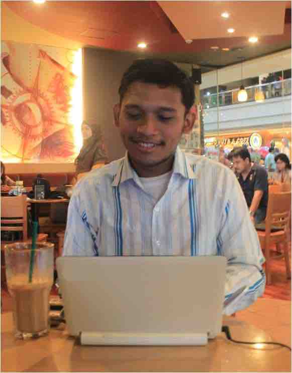 This man is telecommuting from a restaurant. As a result of improvement in technology and Internet connectivity, one can telecommute from almost anywhere now.