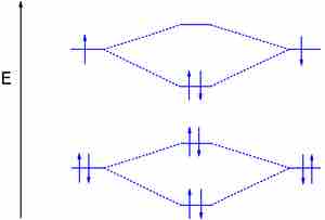 However, removing an electron from the antibonding level produces the molecule He2+, which is stable in the gas phase with a bond order of 0.5.