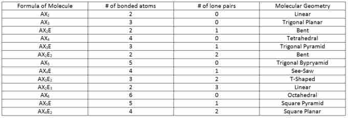 Use the molecule's formula, along with the number of bonded atoms and lone pair electrons, to determine its geometry.