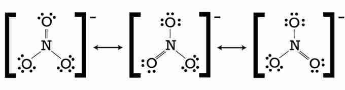 The nitrate ion has three valid contributing structures that vary according to the placement of the electrons.