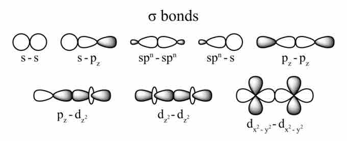 • Sigma bonds can occur between any kind of atomic orbitals; the only requirement is that the atomic orbital overlap happens directly between the nuclei of atoms.