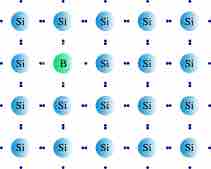 Doping a pure silicon semiconductor with the group III dopant boron results in a deficit of conductive electrons and creates a positive hole.