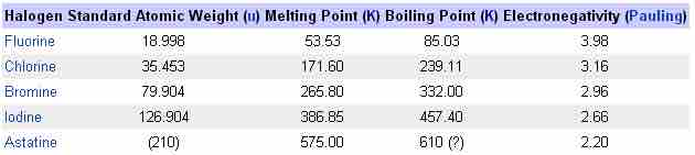 Properties of the halogen group