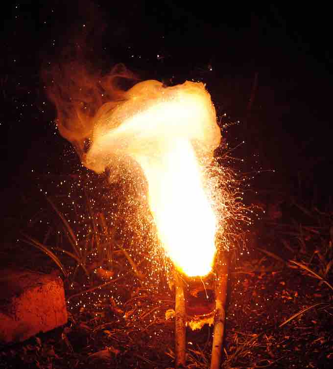 A thermite reaction, which produces molten iron.