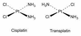 An example of cis and trans isomers can be seen for platin. Cisplatin is used as an anti-cancer drug because it can bind to the DNA of rapidly growing cells and prevent replication. The trans form of this chemical is not as effective at binding to the DNA.