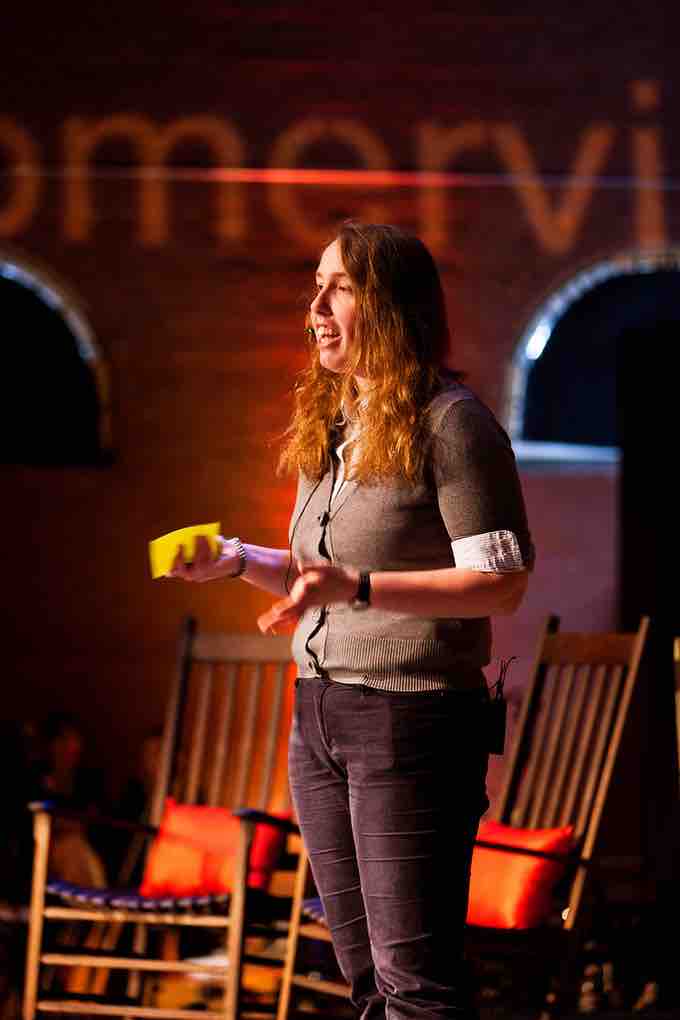 A woman delivers a speech at a TEDx event.
