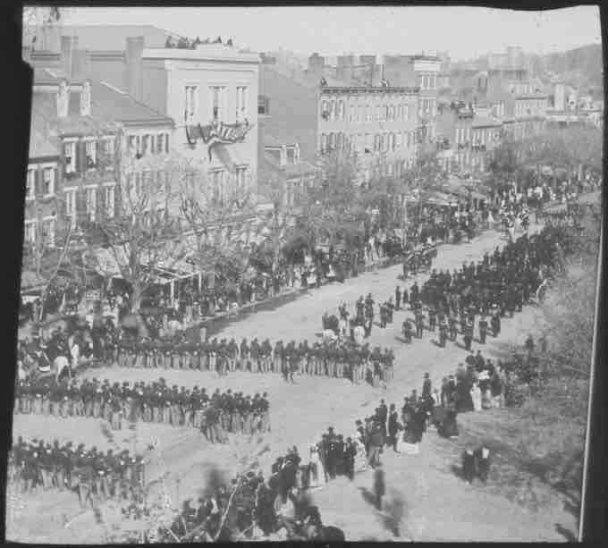 President Abraham Lincoln's funeral procession on Pennsylvania Avenue on April 19, 1865.