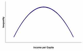 The Kuznets curve depicts the relationship between inequality and income; after hitting a market peak, inequality will decrease as income increases. Recent economic trends have caused researchers to believe that the economy may have started on a new Kuznet's curve given the heightening economic inequality.