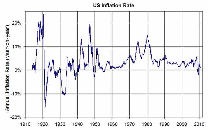 The inflation rates over time in the U.S. represent some of the evidence put forward by monetarist economists, stating that governmental control of the money supply allows for some control over inflation.