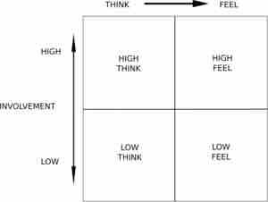 Several models help define the focus of advertisement. The FCB Grid, created by Richard Vaughn, categorizes messages as "thinking" and "feeling", "low" and "high. "