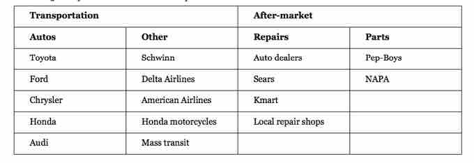 For example, General Motors competes against Ford, Chrysler, Toyota, and other auto manufacturers. They also compete against Sears in the repair market, the subway in large cities, airlines, and Schwinn, among people for whom bicycle riding is popular. Nintendo competes against Sega in the video game market. It also competes against Blockbuster Video, local gyms, board games, the theater, and concerts. Competition focuses on individuals' wants and needs being satisfied, not the product being produced. General Motors, then, is competing to satisfy the public's need for transportation. Nintendo is competing to satisfy the need for entertainment.