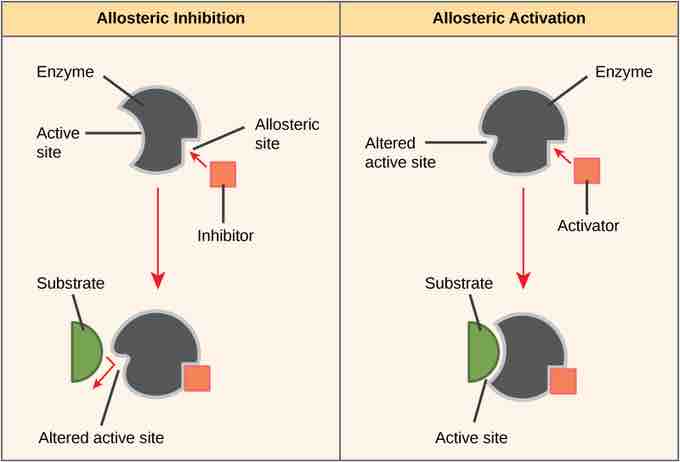 Allosteric inhibitors modify the active site of the enzyme so that substrate binding is reduced or prevented. In contrast, allosteric activators modify the active site of the enzyme so that the affinity for the substrate increases.