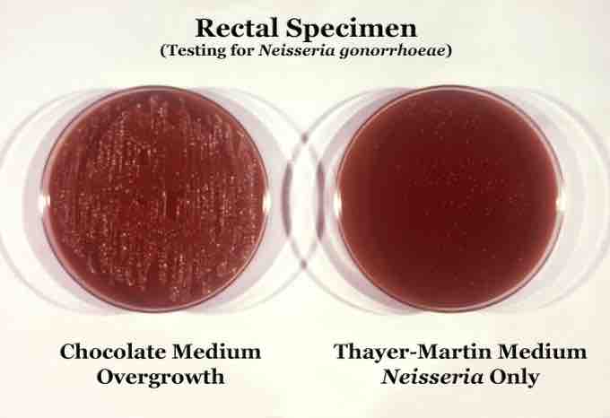 Neisseria gonorrhoeae cultured on two different media types and presented in stereoscopic 3d.