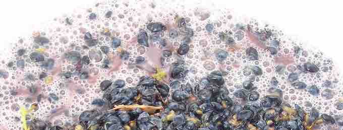 This is a photograph of grapes undergoing fermentation during the wine-making process.