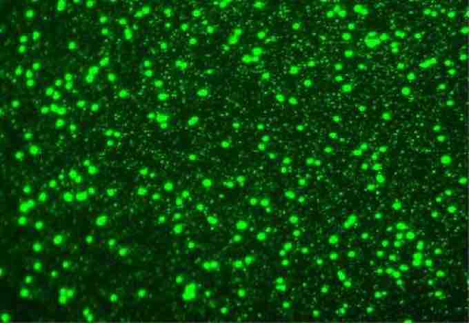 The large green dots are bacteria while the smaller green dots are viral particles. This represents a fraction of the viral diversity seen in teaspoon of marine water.
