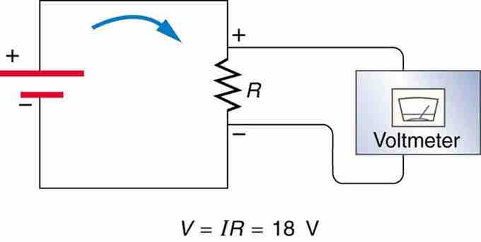 Additional insight is gained by solving I=V/R for V, yielding V=IR. This expression for V can be interpreted as the voltage drop across a resistor produced by the flow of current I. The phrase IR drop is often used for this voltage. If voltage is measured at various points in a circuit, it will be seen to increase at the voltage source and decrease at the resistor. Voltage is similar to fluid pressure. The voltage source is like a pump, creating a pressure difference, causing current—the flow of charge. The resistor is like a pipe that reduces pressure and limits flow because of its resistance. Conservation of energy has important consequences here. The voltage source supplies energy (causing an electric field and a current), and the resistor converts it to another form (such as thermal energy). In a simple circuit (one with a single simple resistor), the voltage supplied by the source equals the voltage drop across the resistor, since E=qΔV, and the same q flows through each. Thus, the energy supplied by the voltage source and the energy converted by the resistor are equal.
