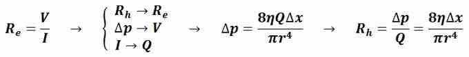 Poiseuille's equation as given in this example (see ) is analogous to Ohm's equation for determining the resistance in an electronic circuit and is of great practical use in hydraulic-circuit analysis.