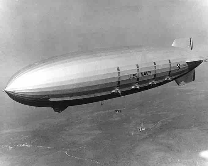 The USS Macon, a 1930s helium-filled airship.