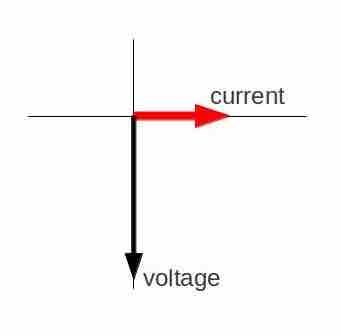 Since the voltage across a capacitor lags the current, the phasor representing the current and voltage would be give as in . In the diagram, the arrows rotate in counter-clockwise direction at a frequency