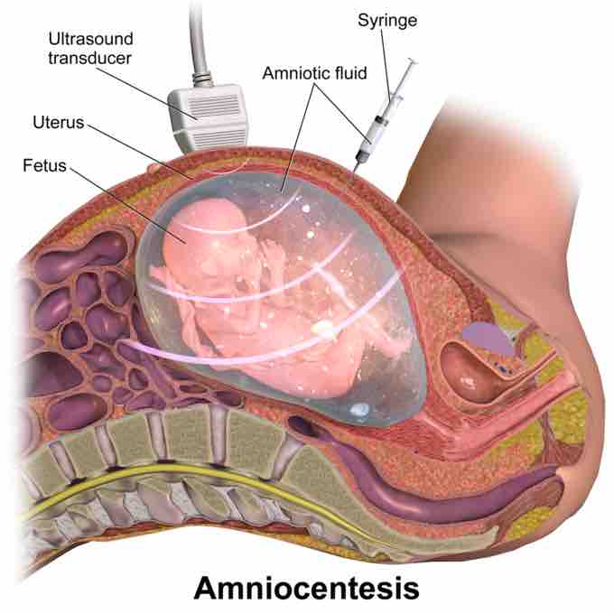 Diagnostic prenatal testing can be done by invasive or noninvasive methods. An invasive method involves probes or needles being inserted into the uterus, e.g., amniocentesis (that can be done from about 14 weeks gestation up to about 20 weeks), and chorionic villus sampling (that can be done earlier: between 9.5 and 12.5 weeks gestation).