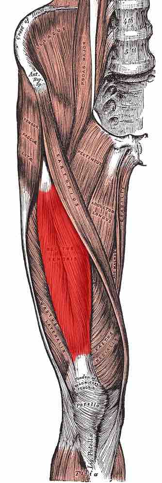 The rectus femoris muscle is one of the four quadriceps muscles of the human body. These muscles may have as many as a thousand fibers in each motor unit.