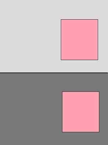 The brain interprets the pink cube on the light gray background as being a darker shade than the pink cube on the dark gray background.