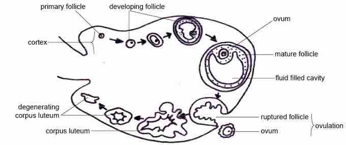 The ovarian cycle is the series of changes that occur in the ovary during the menstrual cycle that cause maturation of a follicle, ovulation, and development of the corpus luteum.