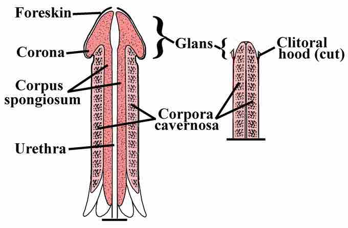 The various parts of the male penis are homologous to parts of the female clitoris: