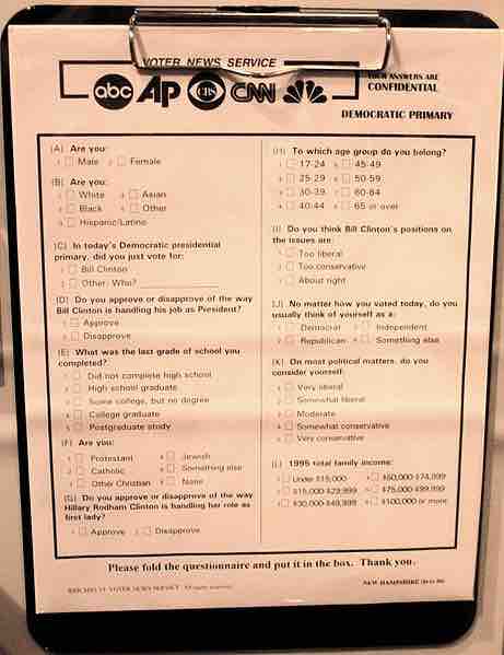 Voter polling questionnaire on display at the Smithsonian Institution