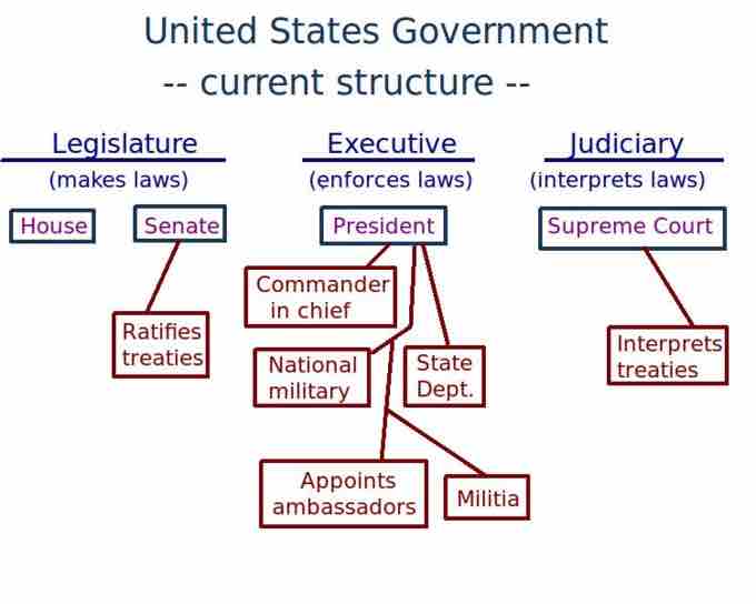 The task of making foreign policy in the United States, according to the United States Constitution, is divided among different branches of government, with the executive branch having much of the decision-making authority, while the Senate ratifies treaties (2/3 vote needed to pass) and the Supreme Court rules on how to interpret treaties. Congress has a role in controlling appropriations for military expenditures.