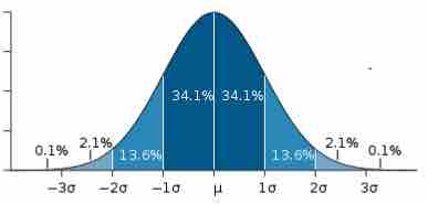 This image shows a normal distribution. About 68% of data fall within one standard deviation, about 95% fall within two standard deviations, and 99.7% fall within three standard deviations.