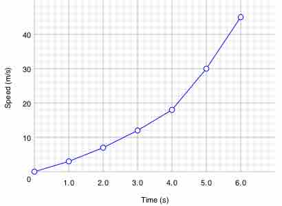 The table "visualization" is a great way of displaying exact values, but can be a poor way to understand the underlying patterns that those values represent. Understanding the process described by the data in the table is aided by producing a graph or line chart of Speed versus Time:
