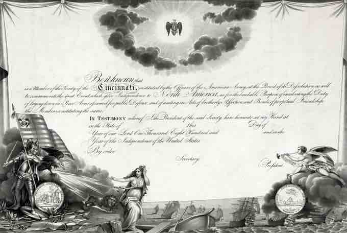 Widely held republican ideals led American revolutionaries to found institutions such as the Society of the Cincinnati, which was founded to preserve the ideals and camaraderie of officers who served in the American Revolution.