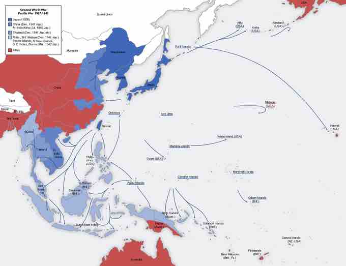 The Japanese also seized the key oil production zones of Borneo, Central Java, Malang, Cepu, Sumatra, and Dutch New Guinea of the late Dutch East Indies, defeating the Dutch forces. They also consolidated their lines of supply through capturing key islands of the Pacific, including Guadalcanal.