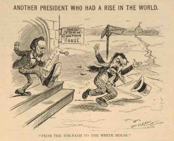 Hayes kicking Chester A. Arthur out of the New York Custom House.