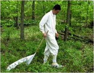 EIS officer drags for ticks at Gettysburg Military Park during a Lyme disease investigation.