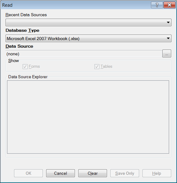 - The Recent Data Sources field provides a list of recently-accessed databases in Classic Analysis or Visual Dashboard. By selecting one of the data sources available on the list, you do not need to provide Database Type or Data Source information. Only data tables or forms will need to be selected again. If you are reading an Epi Info 7 project file from the Data Source section, select the Forms checkbox to view available forms in the project, or select the Tables checkbox to view all project tables.