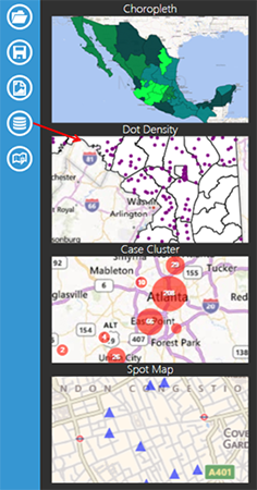- To change any of the display options or to add optional data filters, place the mouse over the Map Layers tab located at the bottom of the screen. When the tab scrolls up, click the layer configuration icon to re-open the Choropleth layer.