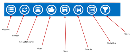 - The Canvas Tools Toolbar is located at the top left corner of the canvas. It allows a quick way to access Visual Dashboard functions: