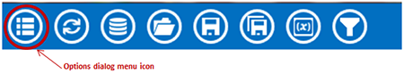 Figure 8.4: Visual Dashboard toolbar, with Options menu icon circled